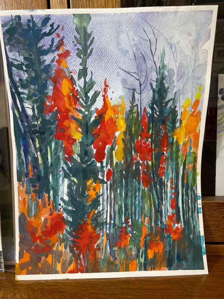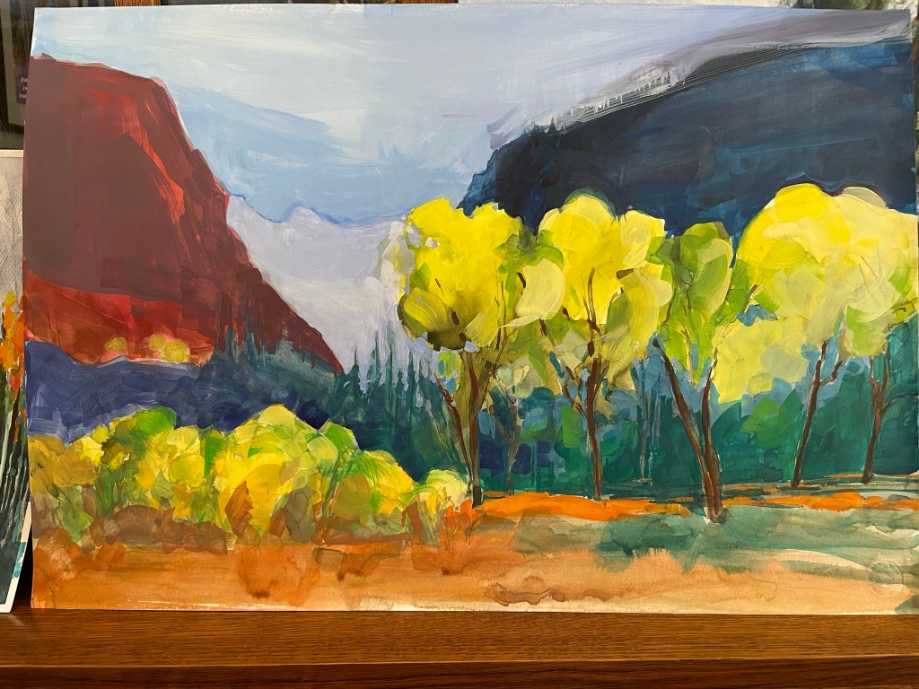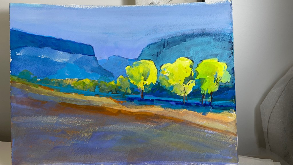 These are my latest creations. Some are ready for framing, but the two smallest, the bright orange pieces, of the Bosque in New Mexico I’ll complete this week. Enjoy! Contact me if you have questions.