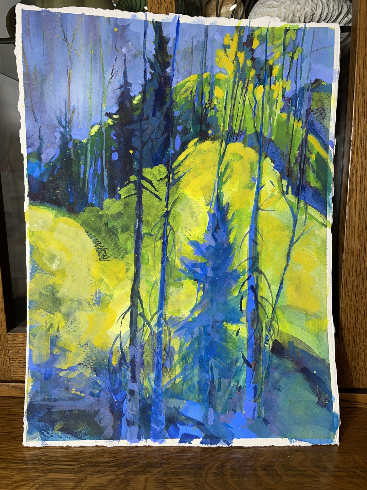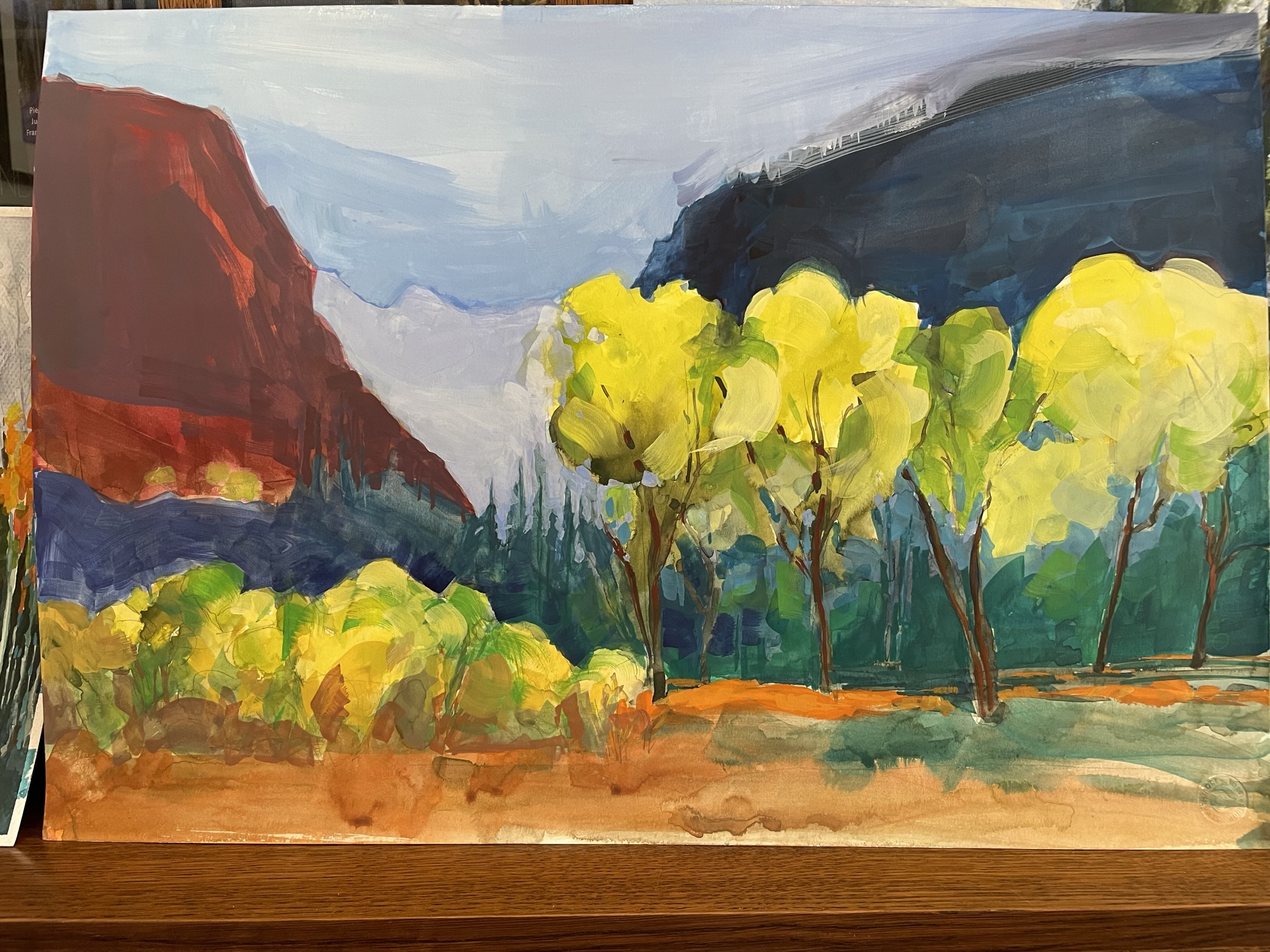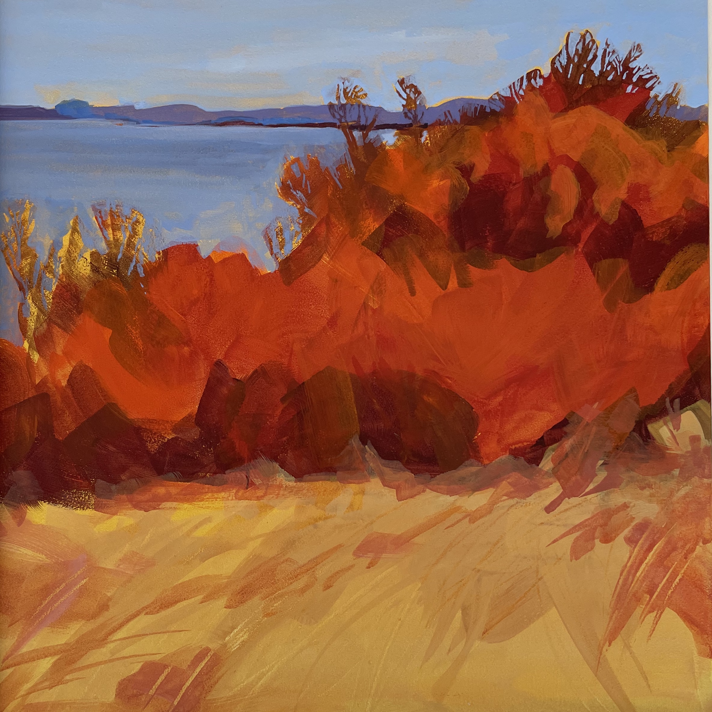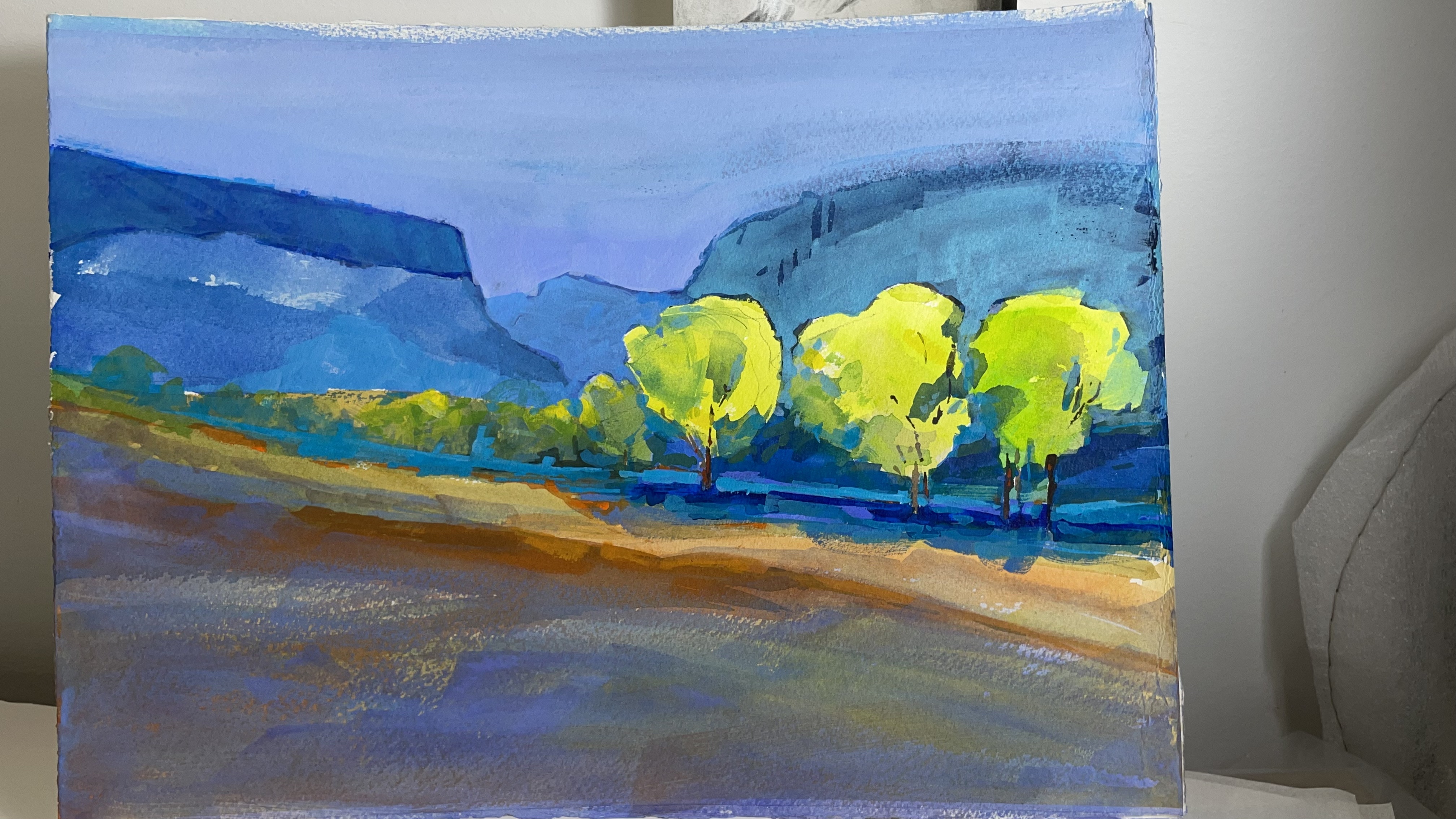 These are my latest creations. Some are ready for framing, but the two smallest, the bright orange pieces, of the Bosque in New Mexico I’ll complete this week. Enjoy! Contact me if you have questions.